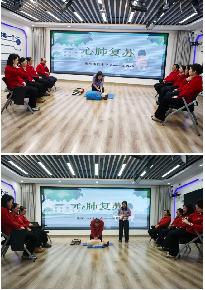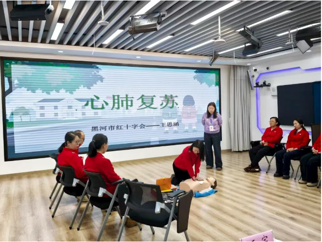 仪式*后,黑河市红十字会派出讲师,为现场全体救援队队员开展心肺复苏知识普及培训。讲师以通俗易懂的语言讲解心肺复苏核心知识,结合实操要点细致示范,让队员们快速掌握心肺复苏关键技能,切实提升应急救护能力。